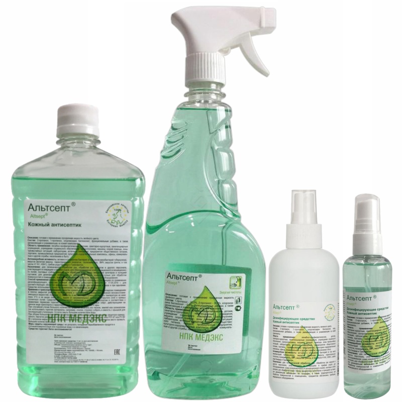 Альтсепт- готовая к применению прозрачная жидкость от светло-зеленого до зеленого цвета.