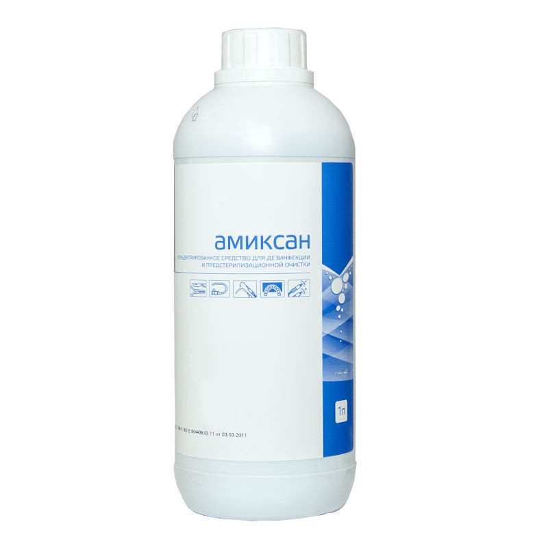 «Амиксан» — дезинфицирующее средство на основе аминополимерных соединений. Используется для дезинфекции поверхностей, оборудования и инструментов в медицинских учреждениях, косметологических салонах, салонах красоты, тату-студиях, парикмахерских, стоматологических клиниках и других объектах здравоохранения.