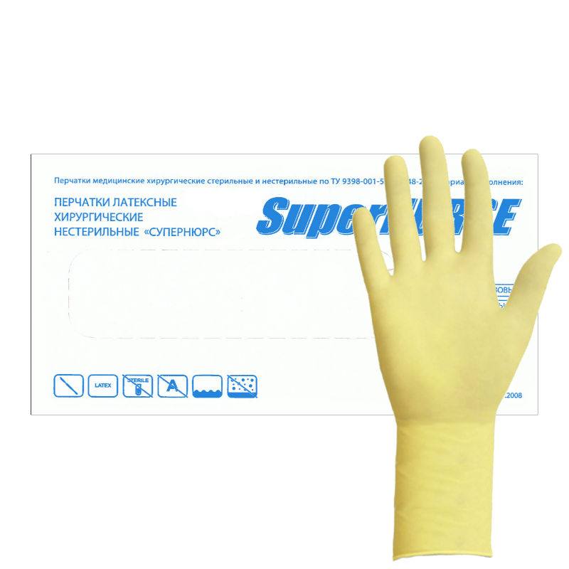 Перчатки хирургические латексные нестерильные неопудренные SuperNurse