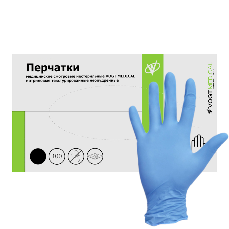 Перчатки нитриловые смотровые Vogt Medical голубые