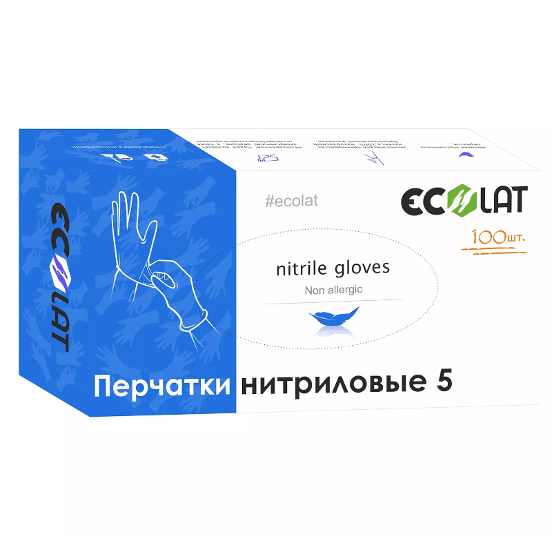 Перчатки смотровые нитриловые EcoLat 5 голубые